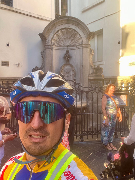 Il me reste trop peu d’eau. Plus de 40km sans pouvoir m’hydrater malgré la forte chaleur, c’est très dur… Les derniers hectomètres dans Bruxelles sont insupportables – je dois m’arrêter régulièrement à cause des douleurs aux jambes. Mais je finis par gagner la Grand Place – fermée pour un son et lumière ! C’est ballot. Un salut au Manneken-Pis et en prenant la longue montée de la rue des Colonies, je me lance dans les 13 derniers kilomètres à parcourir… À 21h, je termine mon premier 350km !! Je suis sec, mais j’ai réussi. Arrivé chez mon parrain, il prononcera, admiratif, un « Malatooo ! Sei un fenomeno !! », quelques mots qui me touchent beaucoup.