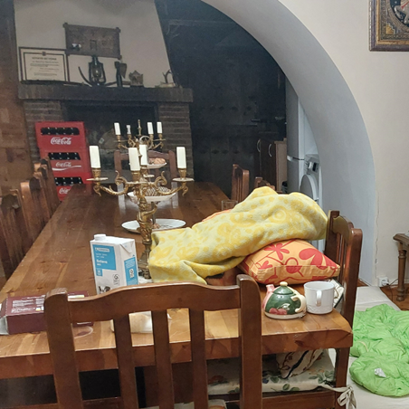 J’arriverai à Canamarès sans avoir trouvé à manger. J’ai réservé dans un genre d’airbnb : l’entrée est à peine indiquée, mais en bas de l’escalier, il y a six vélos garés. Je monte à l’accueil et demande s’il est possible de manger. Non, l’aubergiste ne prépare rien mais m’indique qu’il y a une cuisine à disposition et va chercher une clé magique : il ouvre une porte dérobée qui donne sur un supermarché fermé : je peux acheter de la charcuterie, des yaourts, du pain, des fruits !