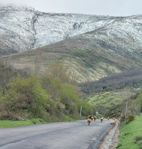 J’arrive vers 11h dans le magnifique petit village de Pédroso, désert sous la pluie. J’aimerais bien pouvoir piquer un somme à l’abri dans l’église. Alors que 4 hommes passent dans la rue, je les aborde pour leur demander s’il y a un hôtel : je connais la réponse, c’est non, mais c’est pour introduire ma question suivante. Je leur demande si quelqu’un pourrait m’ouvrir l’église ou une salle municipale pour que je puisse y dormir avec mon duvet de montagne, expliquant que mon hôtel est 35km plus haut dans la montagne et que je suis fatiguée et frigorifiée (mais cela devait se voir !). Ils téléphonent dans les hôtels des villages environnants, mais tout est complet (je le savais déjà !). Un des hommes me propose de m’emmener au « fronton » : je pensais qu’il s’agissait d’un gymnase comme celui d’Hasparren, mais c’est juste un mur. Donc sans protection du froid et de la pluie. Je n’ai jamais testé mon bivy et je sais qu’on a beaucoup plus froid quand on s’arrête. Tant pis, je vais continuer.