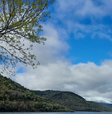 Je repars sur une belle petite route qui monte avant d’arriver à un lac (à Mansilla de la Sierra) que je dois contourner sur une route mal goudronnée. Les bas cotés sont remplis de neige, je passe à coté d’une station de ski, il fait de plus en plus froid, mais suivront quelques heures très agréables, faciles à pédaler dans un paysage de montagne beau et calme avant de redescendre au premier contrôle.