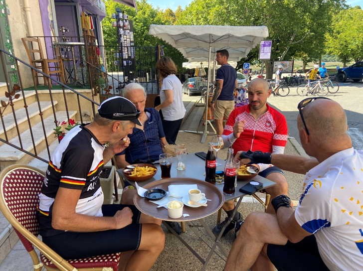 À Malaucène je vois l’équipe de tête attablée (Gerhart, Stutz, Mathias, Michael et Eva), Christian a déjà pris ses distances et est parti devant.