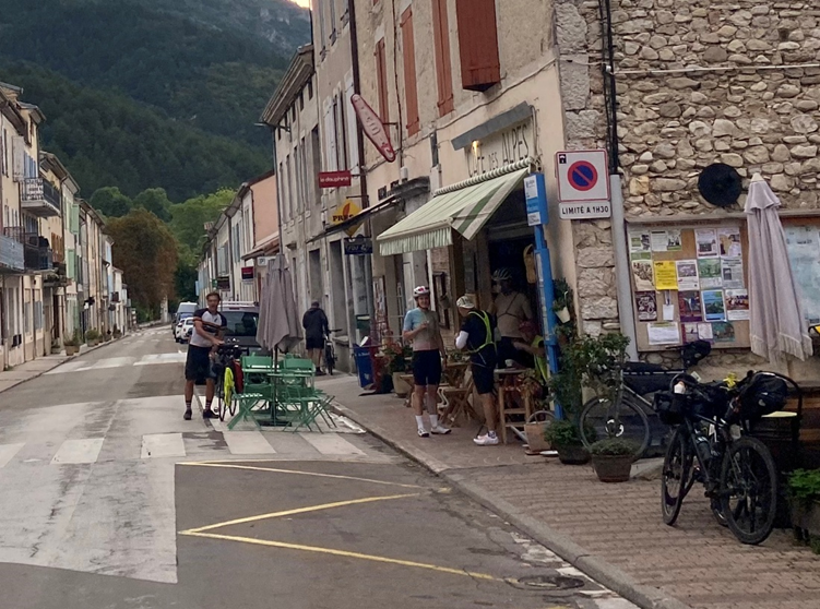 À Châtillon en Diois, je vois la bande Stutz, Gerhard, Michael, Eva, etc autour d’un bar.