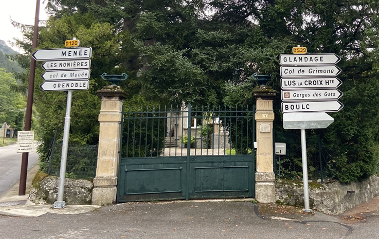 11:15 Je cherche à me ravitailler à Mens. Une boulangerie propose friand fromage et quiche bien grasse ; délicieux. Je prends un Perrier au bar en face et ça repart pour le col de St Sébastien.