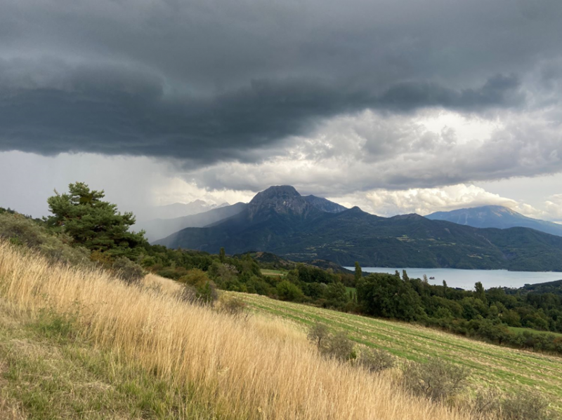 Yapuka descendre vers Embrun sous un ciel chaotique et splendide.
