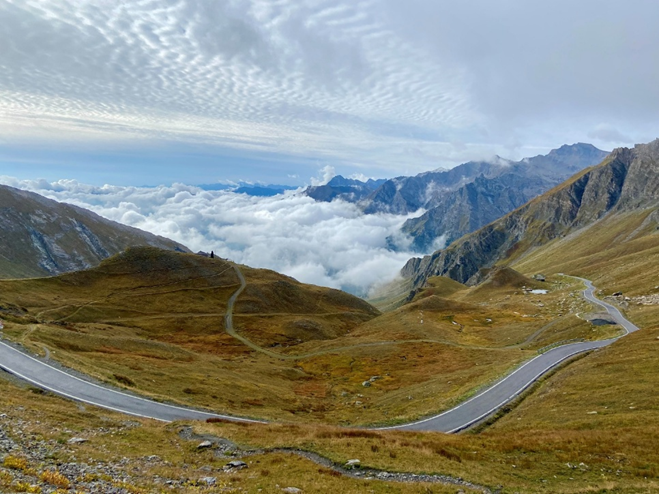 Membre du club des cent cols, j’adresse chaque fin d’année au délégué régional (Jean-Yves JAMIN, de l’Hérault), avec la cotisation, la liste des cols franchis dans l’année, y compris les « cols fauteuils » : ceux grimpés dans le passé, mais non détectés à l’époque, faute de panneau ou d’indication sur les cartes routières, ou non encore listés par le CCC. On peut désormais les identifier grâce aux outils informatiques du site du CCC (« cartes et photos »). Aussi, entre ces cols, ratissés département par département, et ceux franchis ces derniers mois, au gré des randonnées, je totalise, fin 2024, 754 cols déclarés au CCC, mais, du fait de la règle des cinq cols de plus de 2000 m d’altitude tous les cent cols, je ne peux dépasser la barre des 800, n’ayant passé que 35 cols à plus de 2000 m ! De ce fait, je dispose d’une « liste d’attente » de cols franchis et non encore déclarés. En 2024, j’avais pu « débloquer » une partie des cols de cette liste d’attente, en effectuant, fin juillet, une journée de VTT sur la piste franco-italienne de la route du sel, en partant du village de Tende, en grimpant au col de Tende par la piste dite des 46 lacets (en fait une soixantaine de virages), et en avançant vers l’est, avant de revenir à Tende par le même chemin, soit 66 km à la modeste moyenne roulée de 9 km/h (vu la difficulté de pistes aux nombreux passages empierrés), et 5 cols de plus de 2000 m franchis (j’avais loupé, au passage, le col Plane, et n’avais pas eu le temps d’aller jusqu’au col de la Vieille Celle : s’il « fait toujours beau au-dessus des nuages », ceux-ci, plus hauts vers le Mercantour, annonçaient l’orage), dans un paysage grandiose.