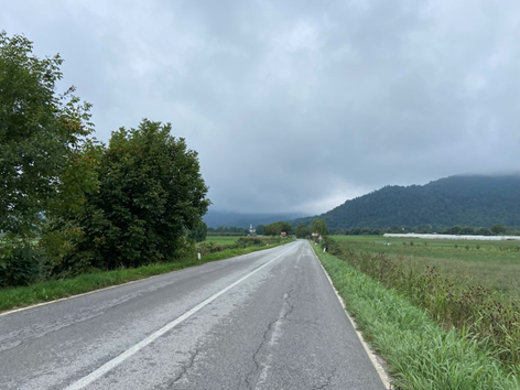 Rien ne sert de courir et je pars à point en ce lundi matin : selfie devant le Parlement, puis arrêt chez un vélociste pour vérifier ma chaîne. Il me déconseille l’huile de table… Note pour plus tard : prendre une burette de lubrifiant ! Quelques courses, puis je prends le départ de ma seconde Flèche de France pour Paris à 10h40. La sortie de Strasbourg est mal aisée en raison de travaux d’aménagement et de la pluie qui s’invite. J’ai appris à enfiler ma veste pluie en pédalant mais… j’avais décidé qu’il était inutile d’enfiler mes surchaussures ! Juste avant le déluge, le perron de l’église de Wolfisheim m’abrite pour cette opération nécessitant de quitter ses chaussures. J’ai bien fait, les conditions seront mauvaises un bout de temps. Heureusement, le parcours est « roulant ». Mais à partir d’Obernai, j’attaque l’ascension du Col du Donon qui se fait en 2 temps : d’abord 20km jusqu’à Grendelbruch, puis 10km de Schirmeck au sommet du Col. Une prochaine fois, j’irai voir le temple là-haut ! Sur le papier suivent ensuite 60km descendants. Mais, je n’avance pas ! La route et les conditions sont mauvaises ; le vent de face ne cesse de me freiner. Je suis trempé et transi de froid ! D’ailleurs, je m’arrête dans un abri bus à la Trouche, où j’arrive au bout du rouleau. Restauré et changé, je repars pour… 16km seulement, victime d’une crevaillon (crevaison liée à gravillon frais) alors que j’attaque le raide « chemin de la Creuse » ! Heureusement, je peux gravir l’essentiel, avant de remplacer la chambre et utiliser, sous l’œil admiratif d’un spectateur inopiné, ma mini pompe électrique. Testée auparavant ! 20min plus tard, je repars pour les 65km derniers kilomètres du jour, assez peu roulants. J’ai le réflexe de m’arrêter faire des courses à Vézelise, juste avant la fermeture du G20. L’arrivée à l’étape à lieu à la nuit tombée à Favières vers 20h, un peu en avance sur l’horaire prévu. Repas et repos bien mérités après ces 179km et 1880m de dénivelé positif. Et Weather Impact m’indique que j’ai eu du vent de face 90% du parcours. Je comprends mieux ma fatigue et décide de décaler mon départ à 5h le lendemain.