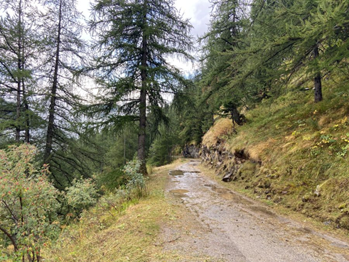 Au réveil, le lendemain, je commence par regarder le ciel nocturne : la lune est là, un peu voilée. La météo d’hier soir a confirmé l’arrivée de la pluie, venue du Sud. Mais elle ne devrait toucher les Hautes-Alpes qu’en fin de matinée. Je n’annule donc pas le dernier parcours prévu, le « pèlerinage du col de Parpaillon » et me hâte au petit-déjeuner, à 7H, accélérant ensuite les préparatifs pour démarrer au plus vite, en direction du Sud. Après une bonne heure de route, je remonte l’étroite vallée du Crévoux, passe sous le village du même nom et me gare au hameau de La Chalp sur un grand parking aussi désert que celui d’hier. Il est près de 10H lorsque je m’élance sur la D39T. Après une courte descente, la route s’élève dans une forêt. J’ôte assez vite le coupe-vent et grimpe « en court », avec l’ancien maillot du CCC. Le ciel est bien nuageux, et on est déjà à près de 1600 m d’altitude, mais l’effort réchauffe ! Passé un petit pont, après environ 2 kilomètres, le macadam laisse place à la piste, de plus en plus raide et pierreuse. Comme hier au col Basset, je mets parfois pied à terre, surtout dans les virages à fort dévers et à gros pourcentage ! La forêt s’éclaircit et je progresse lentement dans les alpages. Il y a encore plusieurs troupeaux de vaches, passé 2000 mètres. Plus haut encore, j’apercevrai une marmotte. Je croise un 4X4, et quelques motos, au retour. Le paysage est somptueux et, la pente se faisant moins raide, je peux mieux l’apprécier. Je marche encore parfois, pour passer une clôture électrique amovible, barrant la piste, puis, plus haut, pour passer à gué un torrent. Un couple sur VTT électrique me double à proximité du fameux tunnel du Parpaillon (FR-04-2637), qui finit par apparaître au détour d’un virage. Il est presque midi, et je suis enfin arrivé dans ce lieu rêvé depuis des décennies ! Je songe à la grande époque du cyclotourisme, qui a dû se terminer avec les années 70, celle du « rallye du Parpaillon », narré notamment dans la revue du cinquantenaire du CCC (2022) (page 35) par Alain COLLONGUES : départ de Gap, passage du col de Vars, grimpée du Parpaillon par l’autre versant (Est), traversée du tunnel sombre et humide, descente sur Crévoux et Embrun et retour sur Gap. 500 cyclos avaient réalisé cet exploit en 1970. Alain conclut ainsi son récit : « Jamais cette merveilleuse journée n’a quitté mon souvenir. Jamais les Alpes ne m’ont paru si belles ». Hélas, le tunnel est désormais condamné et, comme Antibes-Thonon, le rallye du Parpaillon a disparu. Les « cyclosportives » ont désormais plus de succès !