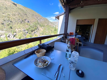 Un neveu de Sophie, assisté des randonneurs allemands, prépare et sert un excellent et copieux dîner.