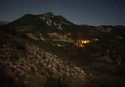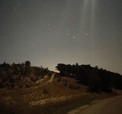 Il fait très froid avec fort vent d’Ouest. De nouveau la lune éclaire tout. Je m’arrête à la première bosse pour observer les constellations. Je révise pour reconnaître Orion.
