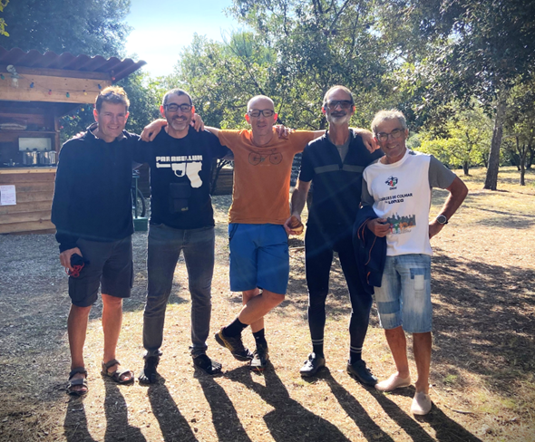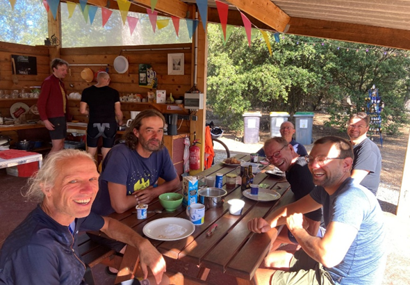 Il fait beau, les potes français arrivés la veille au soir sont frais. Les allemands (qui n’ont pas fait de pause comme moi) arrivés dans la nuit ont aussi pu dormir sur place.